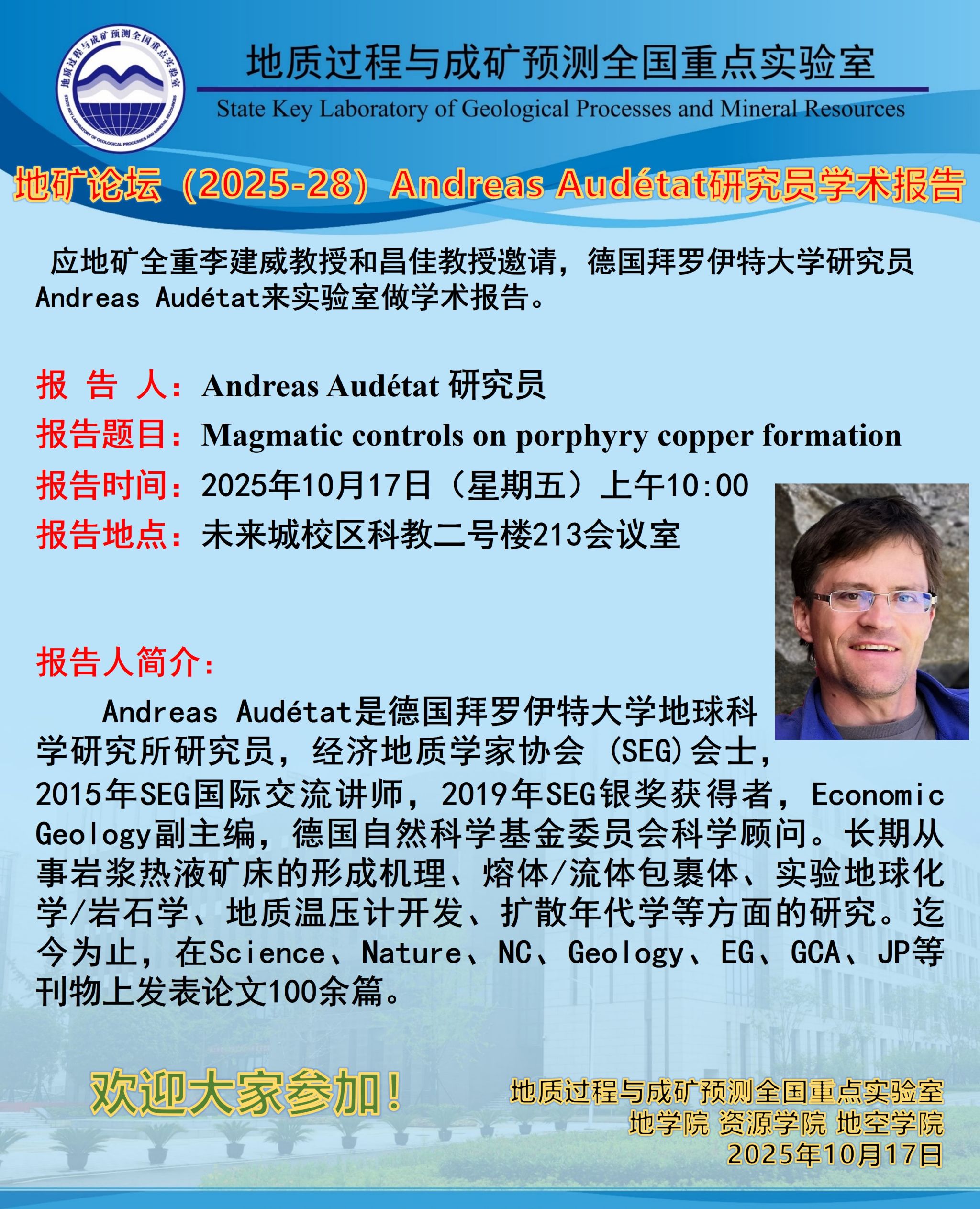 地矿论坛(2025-28):Andreas Audétat 研究员学术报告