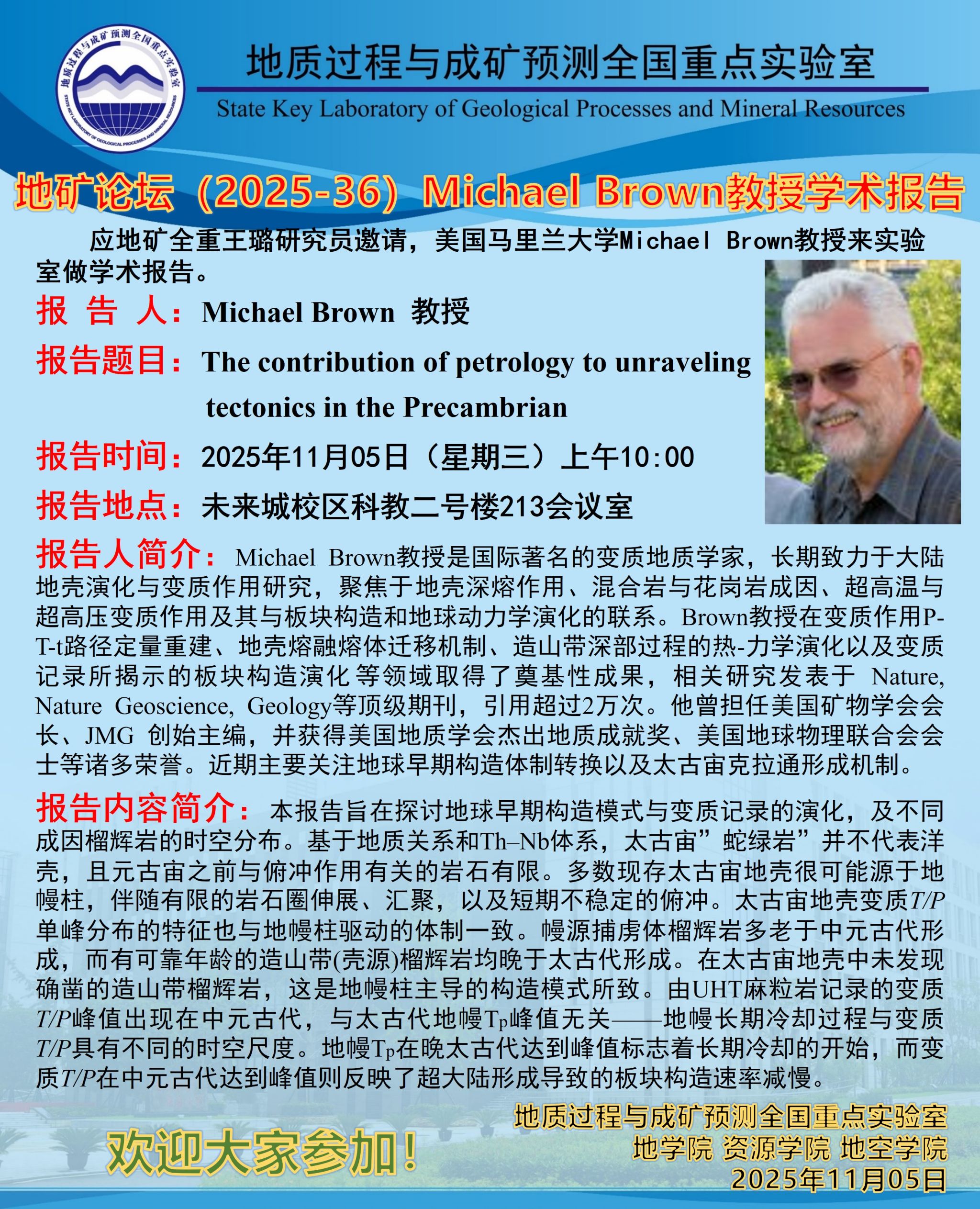 地矿论坛(2025-36):Michael Brown 教授学术报告