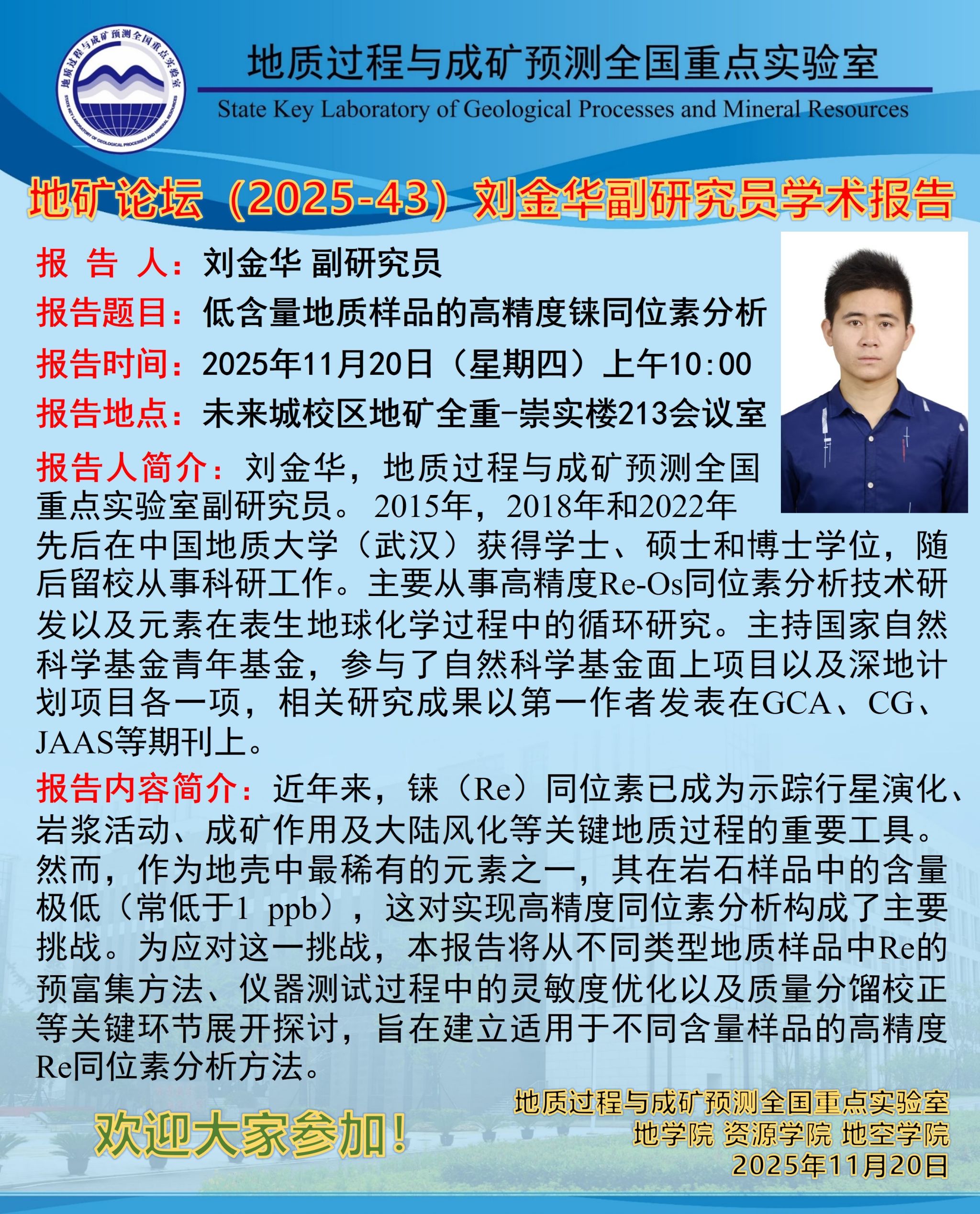 地矿论坛(2025-43):刘金华 副研究员学术报告