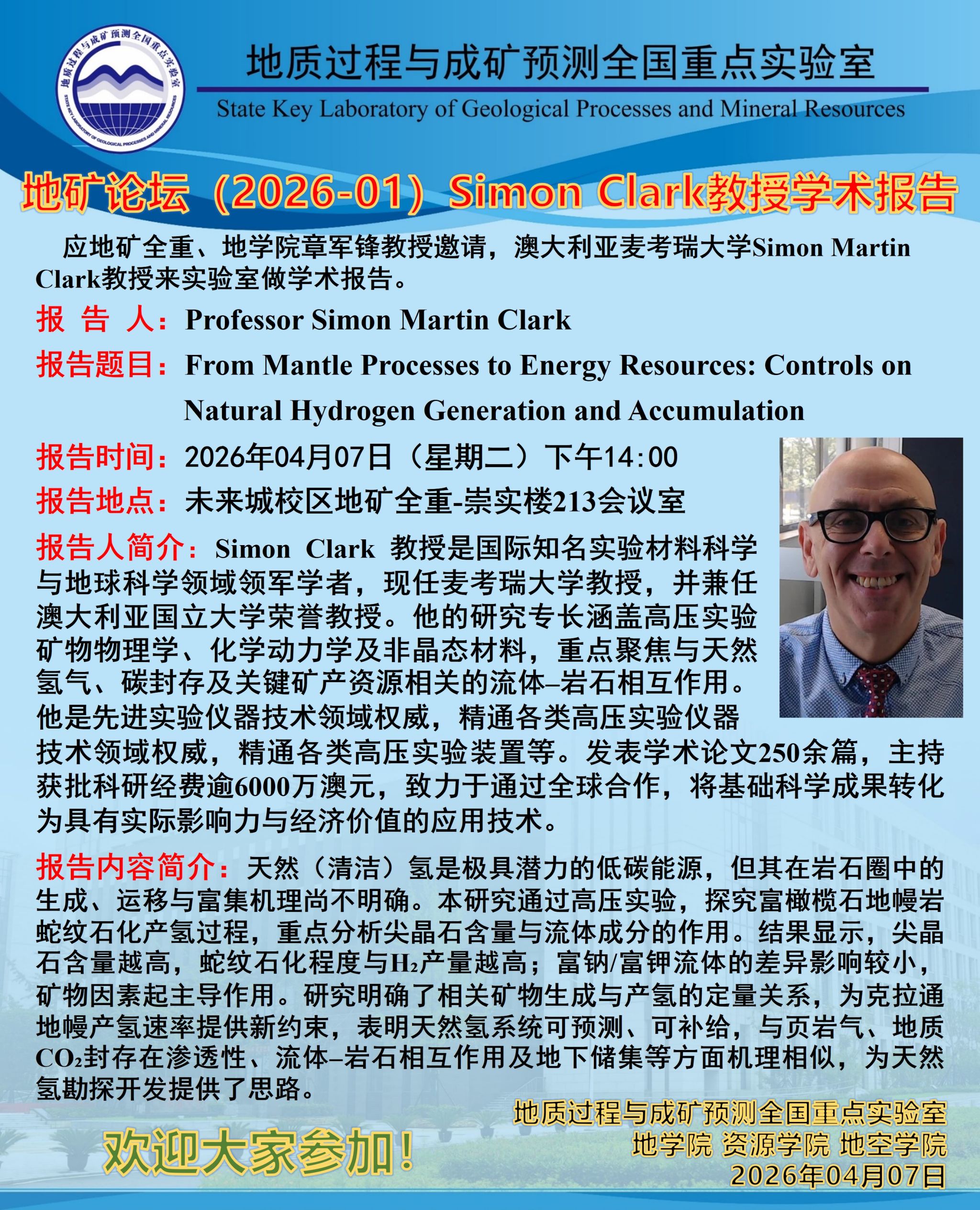 地矿论坛(2026-01):Simon Clark 教授学术报告
